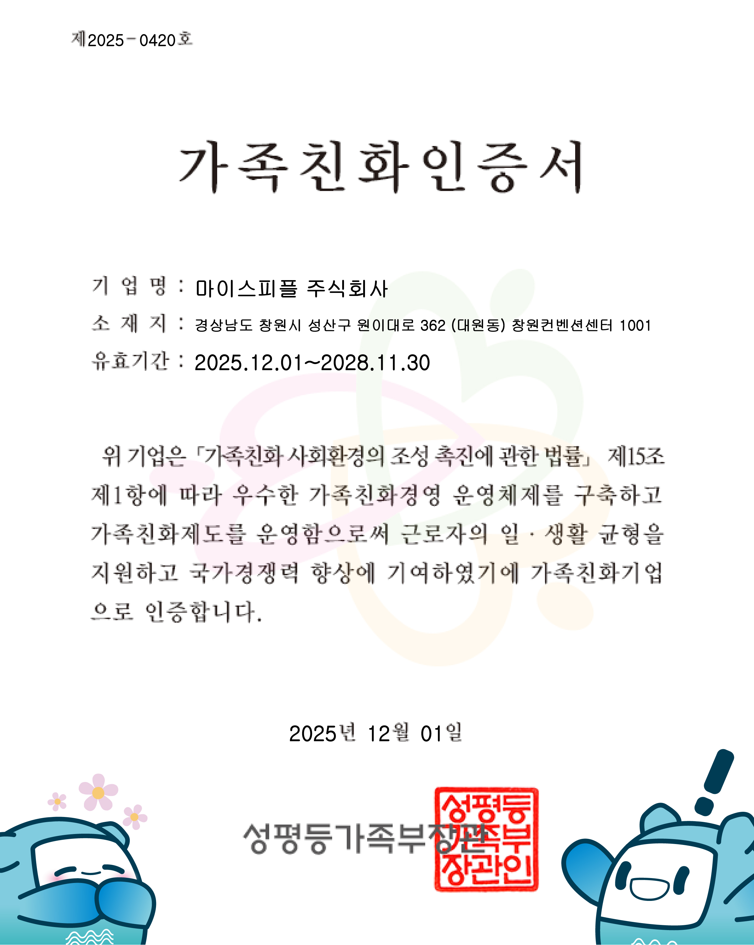 주소 : 51408 경상남도 창원시 성산구 원이대로 362(대원동, 창원컨벤션센터) 신관 1001호